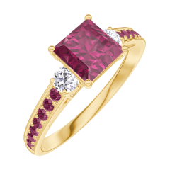 Ring Yellow gold 18 carats - Ruby Princess 0.7 Carats - Ring settings Diamond white - Setting Ruby