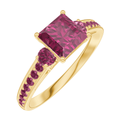 Ring Yellow gold 18 carats - Ruby Princess 0.7 Carats - Ring settings Ruby - Setting Ruby