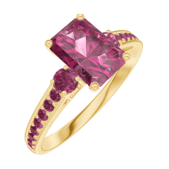 Ring Yellow gold 9 carats - Ruby Baguette 0.7 Carats - Ring settings Ruby - Setting Ruby