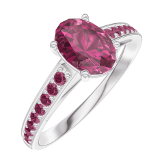 Ring White gold 9 carats - Ruby Oval 0.7 Carats - Setting Ruby