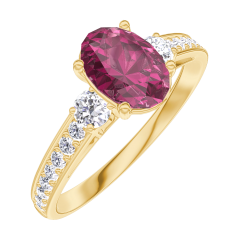 « L'ATELIER » NO. 165726Ring Yellow gold 9 carats - Ruby Oval 0.7 Carats - Ring settings Diamond white - Setting Diamond white