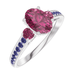 « L'ATELIER » NO. 165755Ring White gold 18 carats - Ruby Oval 0.7 Carats - Ring settings Ruby - Setting Blue Sapphire