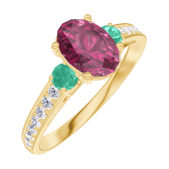 « L'ATELIER » NO. 165786Ring Yellow gold 9 carats - Ruby Oval 0.7 Carats - Ring settings Emerald - Setting Diamond white