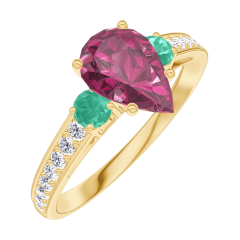 Ring Yellow gold 18 carats - Ruby Pear 0.7 Carats - Ring settings Emerald - Setting Diamond white