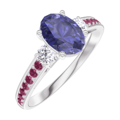 Ring White gold 9 carats - Blue Sapphire Oval 0.7 Carats - Ring settings Diamond white - Setting Ruby
