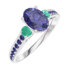 « L'ATELIER » NO. 166396Ring White gold 9 carats - Blue Sapphire Oval 0.7 Carats - Ring settings Emerald - Setting Blue Sapphire