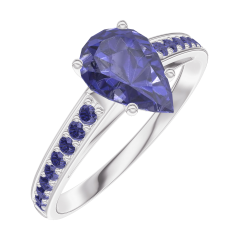 Ring White gold 18 carats - Blue Sapphire Pear 0.7 Carats - Setting Blue Sapphire