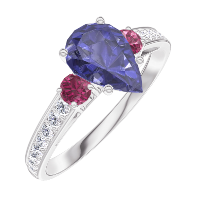 « L'ATELIER » NO. 166448Ring White gold 9 carats - Blue Sapphire Pear 0.7 Carats - Ring settings Ruby - Setting Diamond white