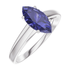 Ring White gold 9 carats - Blue Sapphire Marquise 0.7 Carats