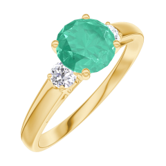 Ring Yellow gold 18 carats - Emerald round 0.7 Carats - Ring settings Diamond white