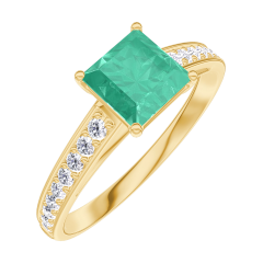 Ring Yellow gold 18 carats - Emerald Princess 0.7 Carats - Setting Diamond white