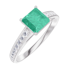 « L'ATELIER » NO. 166707Ring White gold 18 carats - Emerald Princess 0.7 Carats - Setting Diamond white