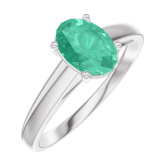 Ring White gold 18 carats - Emerald Oval 0.7 Carats