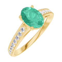 Ring Yellow gold 18 carats - Emerald Oval 0.7 Carats - Setting Diamond white