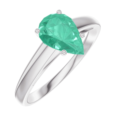 Ring White gold 9 carats - Emerald Pear 0.7 Carats
