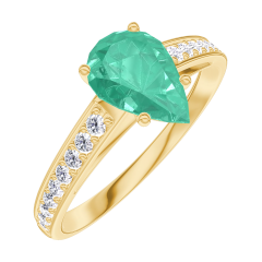 Ring Yellow gold 18 carats - Emerald Pear 0.7 Carats - Setting Diamond white