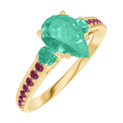 Ring Yellow gold 9 carats - Emerald Pear 0.7 Carats - Ring settings Emerald - Setting Ruby