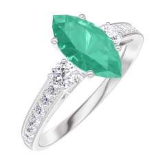 Ring White gold 9 carats - Emerald Marquise 0.7 Carats - Ring settings Diamond white - Setting Diamond white
