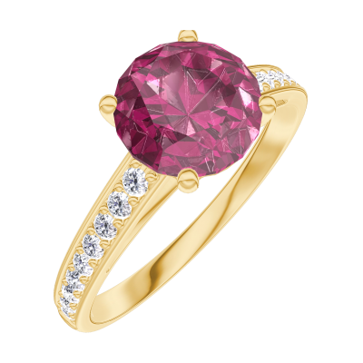 « L'ATELIER » NO. 167806Ring Yellow gold 9 carats - Ruby round 1 Carats - Setting Diamond white 4.9