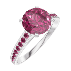 Ring White gold 18 carats - Ruby round 1 Carats - Setting Ruby
