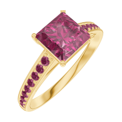 Ring Yellow gold 9 carats - Ruby Princess 1 Carats - Setting Ruby