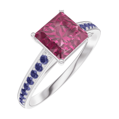 Ring White gold 9 carats - Ruby Princess 1 Carats - Setting Blue Sapphire