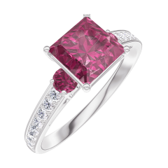 Ring White gold 18 carats - Ruby Princess 1 Carats - Ring settings Ruby - Setting Diamond white