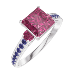Ring White gold 18 carats - Ruby Princess 1 Carats - Ring settings Ruby - Setting Blue Sapphire