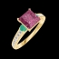 Ring Yellow gold 9 carats - Ruby Princess 1 Carats - Ring settings Emerald - Setting Diamond white
