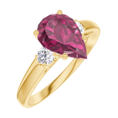 Ring Yellow gold 9 carats - Ruby Pear 1 Carats - Ring settings Diamond white