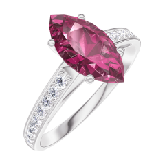Ring White gold 9 carats - Ruby Marquise 1 Carats - Setting Diamond white
