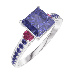 « L'ATELIER » NO. 168555Ring White gold 18 carats - Blue Sapphire Princess 1 Carats - Ring settings Ruby - Setting Blue Sapphire