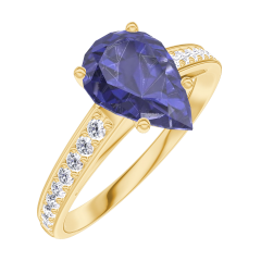 Ring Yellow gold 18 carats - Blue Sapphire Pear 1 Carats - Setting Diamond white
