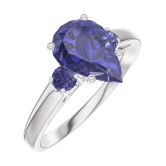 Ring White gold 9 carats - Blue Sapphire Pear 1 Carats - Ring settings Blue Sapphire