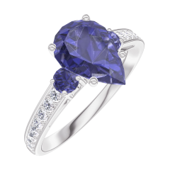 Ring White gold 18 carats - Blue Sapphire Pear 1 Carats - Ring settings Blue Sapphire - Setting Diamond white