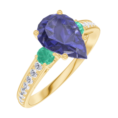 « L'ATELIER » NO. 168886Ring Yellow gold 9 carats - Blue Sapphire Pear 1 Carats - Ring settings Emerald - Setting Diamond white