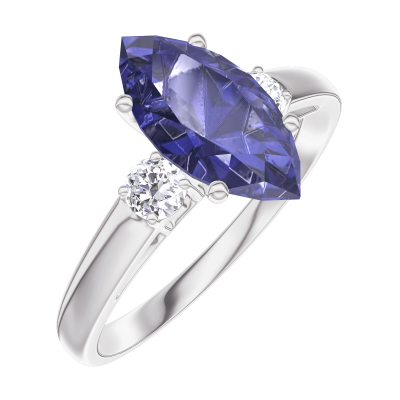 « L'ATELIER » NO. 168924Ring White gold 9 carats - Blue Sapphire Marquise 1 Carats - Ring settings Diamond white