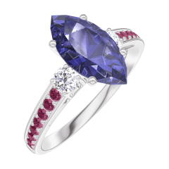 Ring White gold 9 carats - Blue Sapphire Marquise 1 Carats - Ring settings Diamond white - Setting Ruby