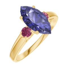 Ring Yellow gold 18 carats - Blue Sapphire Marquise 1 Carats - Ring settings Ruby