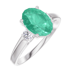 Ring White gold 18 carats - Emerald Oval 1 Carats - Ring settings Diamond white