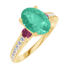 Ring Yellow gold 18 carats - Emerald Oval 1 Carats - Ring settings Ruby - Setting Diamond white