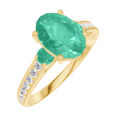 « L'ATELIER » NO. 169386Ring Yellow gold 9 carats - Emerald Oval 1 Carats - Ring settings Emerald - Setting Diamond white 4.8