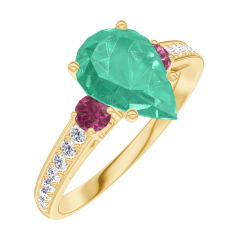 Ring Yellow gold 18 carats - Emerald Pear 1 Carats - Ring settings Ruby - Setting Diamond white