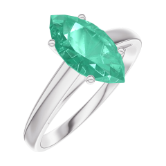 Ring White gold 9 carats - Emerald Marquise 1 Carats