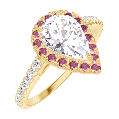 « L'ATELIER » NO. 170213Ring Yellow gold 18 carats - Diamond white Pear 0.5 Carats - Halo Ruby - Setting Diamond white 5