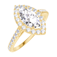 Ring Yellow gold 9 carats - Diamond white Marquise 0.5 Carats - Halo Diamond white - Setting Diamond white