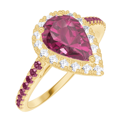 « L'ATELIER » NO. 170489Ring Yellow gold 18 carats - Ruby Pear 0.5 Carats - Halo Diamond white - Setting Ruby 5