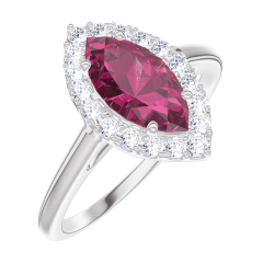 Ring White gold 9 carats - Ruby Marquise 0.5 Carats - Halo Diamond white