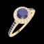 Ring Yellow gold 18 carats - Blue Sapphire round 0.5 Carats - Halo Diamond white - Setting Blue Sapphire