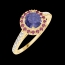 Ring Yellow gold 18 carats - Blue Sapphire round 0.5 Carats - Halo Ruby - Setting Diamond white